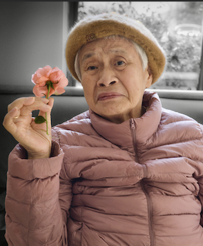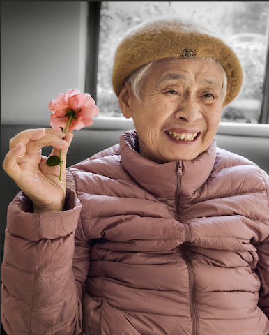 岁月在她身上留下斑驳,可那手中的小花,似在倔强地诉说着往昔的温柔与眷恋。